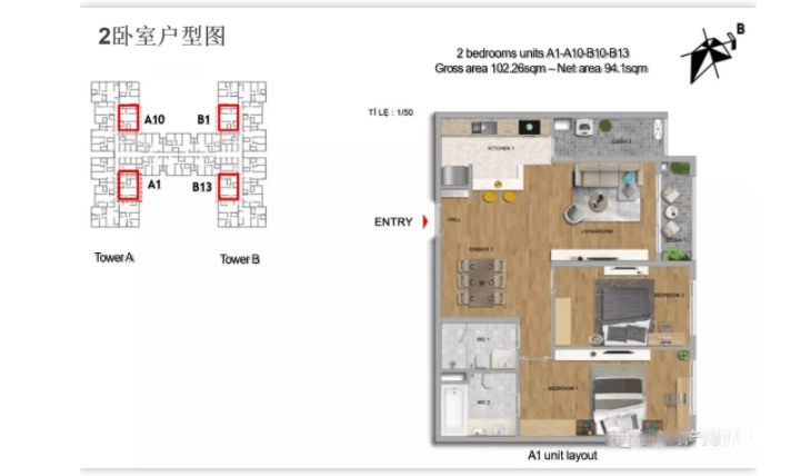 两卧室公寓: